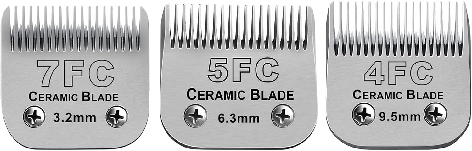 Size 7FC/5FC/4FC Detachable Pet Dog Grooming Clipper Ceramic Blades Set,Compatible with Andis,Oster A5,Wahl KM Series Clippers,Cut Length 1/8"(3.2mm) to 3/8”(9.5mm),3 Pack
