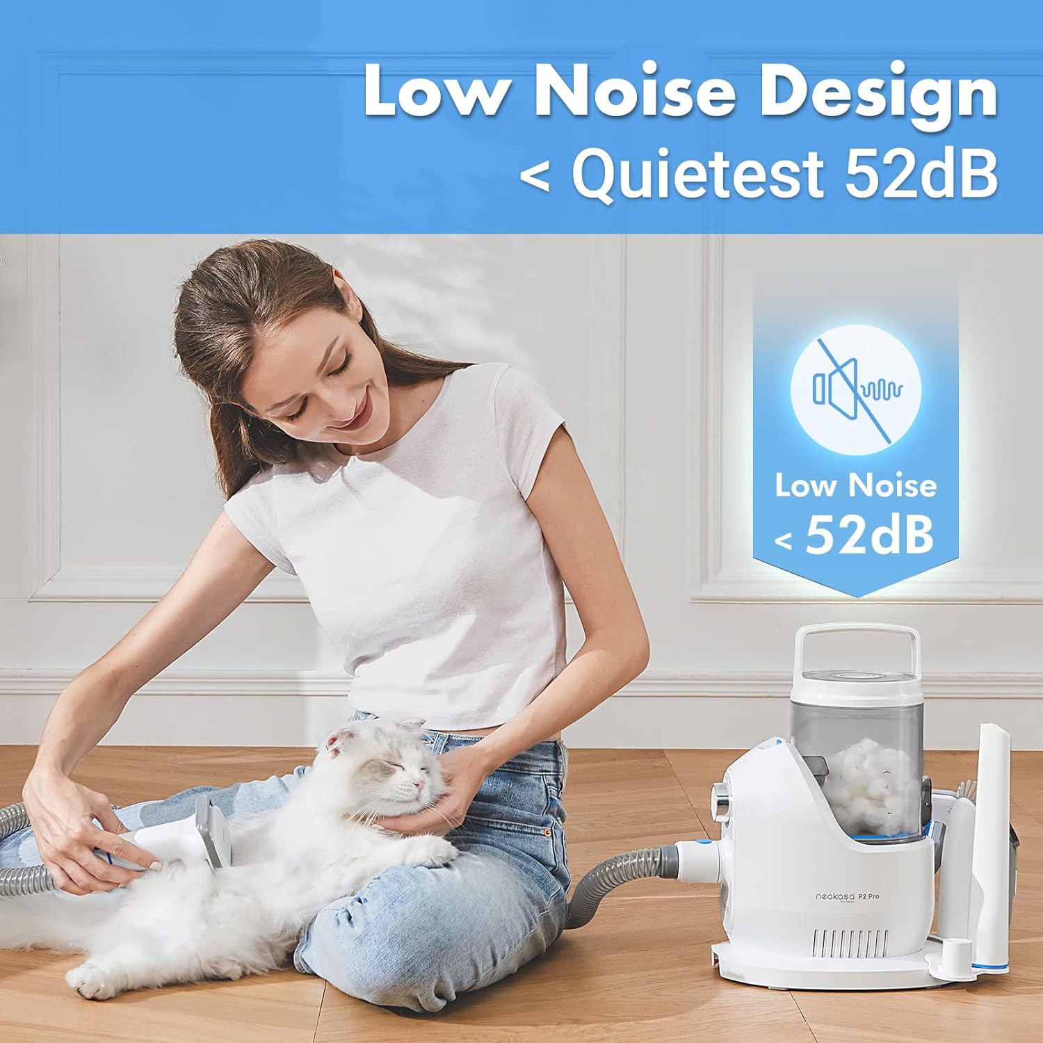 - 【Keeps Your Home Clean and Hair-free】 Traditional home grooming tools bring a lot of mess and hair in the home. Neakasa P2 Pro grooming kit with the powerful built-in vacuum can suck 99% of pet hair into a container while trimming and brushing, which can keep your home clean, there’s no more mount of hair leaving on your clothes, and no more piles of fur spreading all over the house.