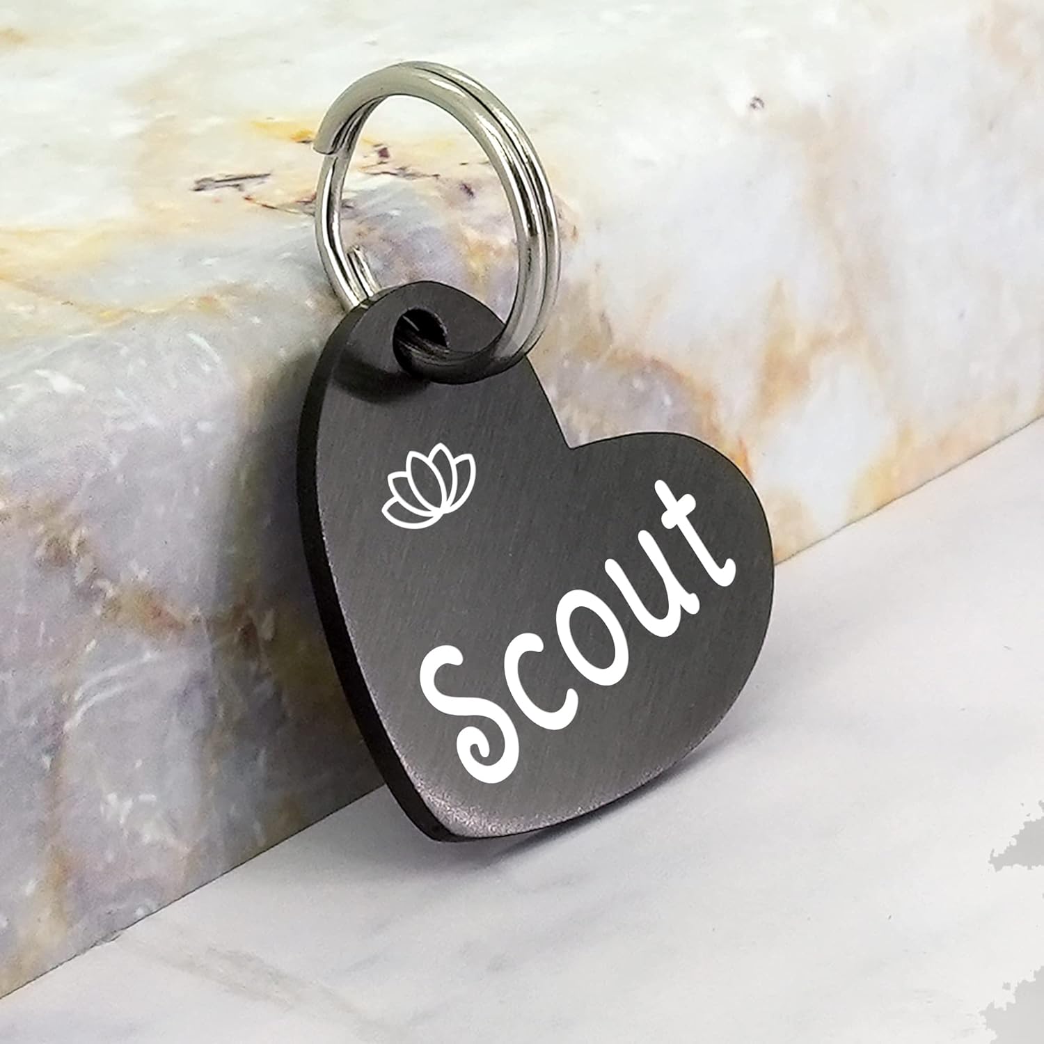 Ultra Joys Cat ID Tag Personalized Pet Tags, Durable Stainless Steel Small Pet Mini Dog Cat Tag Lightweight -Heart Tag in Black