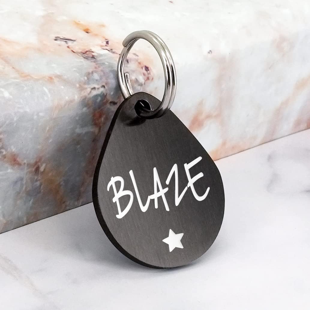 - Perfect Pet Tags for Cats & Small Dogs: Specifically designed for small pets, our pet collar tags are thick and durable yet lightweight. Each name tag comes with two sizes of stainless steel split rings for easy attachment to your pet's collar, ensuring a secure fit without adding unnecessary weight.