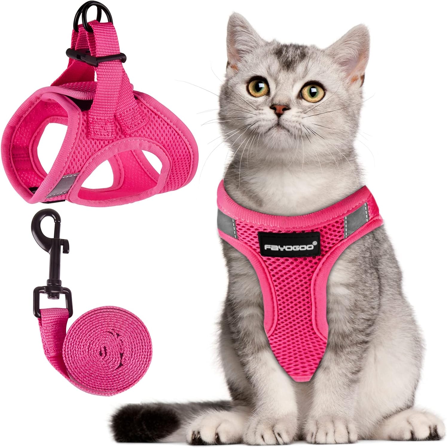 FAYOGOO Cat Harness, Cat Leash and Harness Set for Walking Escape Proof, Harness for Small Cats/Small Dogs, Large Kitten/Puppy Harness and Leash, Harness for Cats S-XXL(Pink, X-Large)