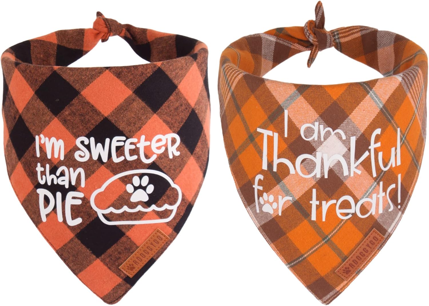 - Adoggygo Thanksgiving Dog Bandanas: Classic plaid design, fall style orange color, carefully designed "I'm sweeter than pie" and "I'm thankful for treats" pattern, make your dog look attractive and unique on thanksgiving day.