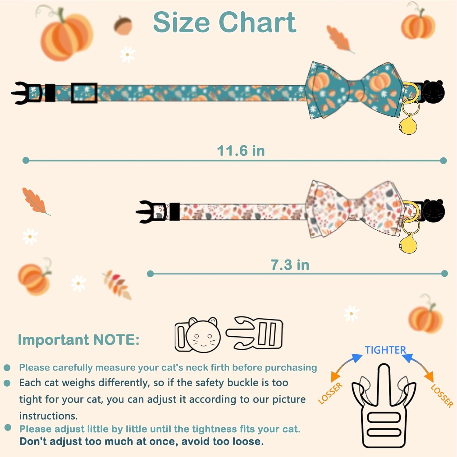 - [Cat Collar Personalized] : Our cat collars are designed by ourselves and made independently. The cat collars are printed with pumpkin fallen leaves, and more fall atmosphere. Not the styles that can be seen everywhere on the market, which can make your pet more unique. Holiday cat collars make a great Fall and halloween gift for your cat, make it be the focus among the crowd.