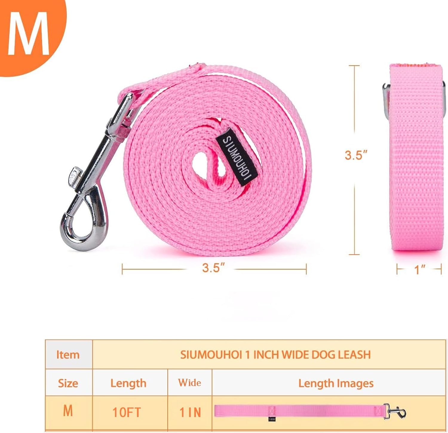 - Size:This Dog leash length: 10 feet. Widen: 1 inch。made of soft strong nylon fabric. 1inch wide to add durability.