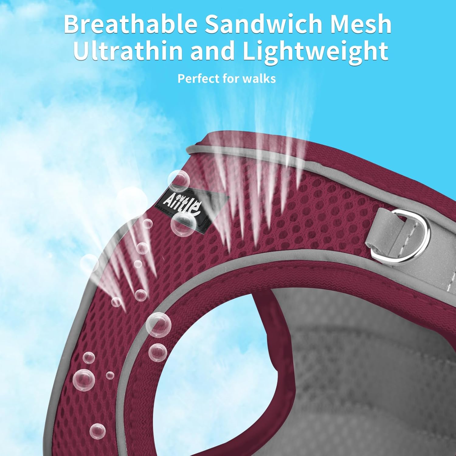 AIITLE No Pull Dog Harness and Leash Set, Step in Adjustable Dog Harness with Padded Vest for All Weather, Dog Leash with Soft Padded Handle, Easy to Put on Small and Medium Dogs Burgundy S