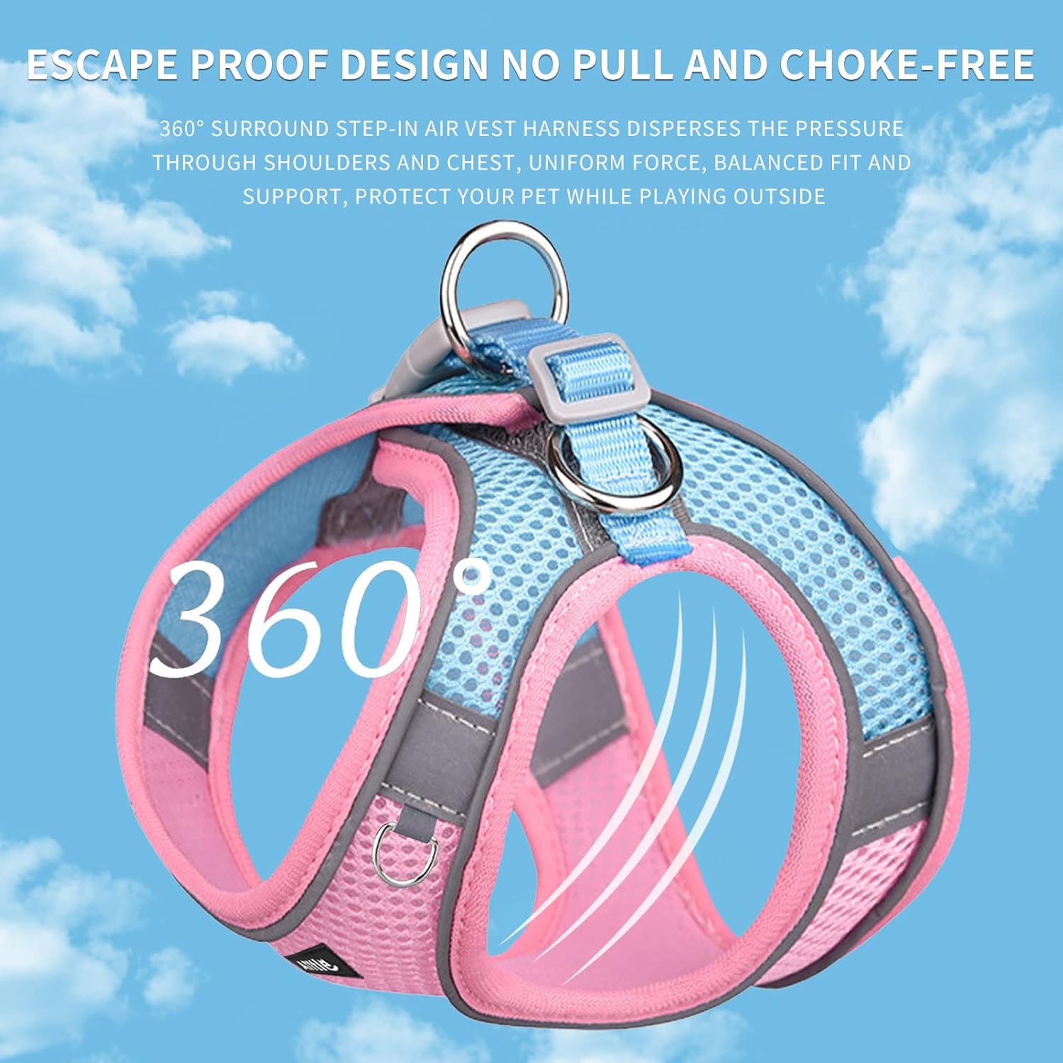 - Ultra Breathable: The step-in dog harness is made with super breathable sandwich air mesh, which is ultrathin, cooler, soft and more comfortable. The surface of sandwich mesh fabric is covered with holes, which can keep your dog dry in daily walking. So our small puppy harness is perfect for walks in any season, such as the upcoming spring, give pets an extraordinary wearing experience. Now you can have a happy walking with your pet dog!