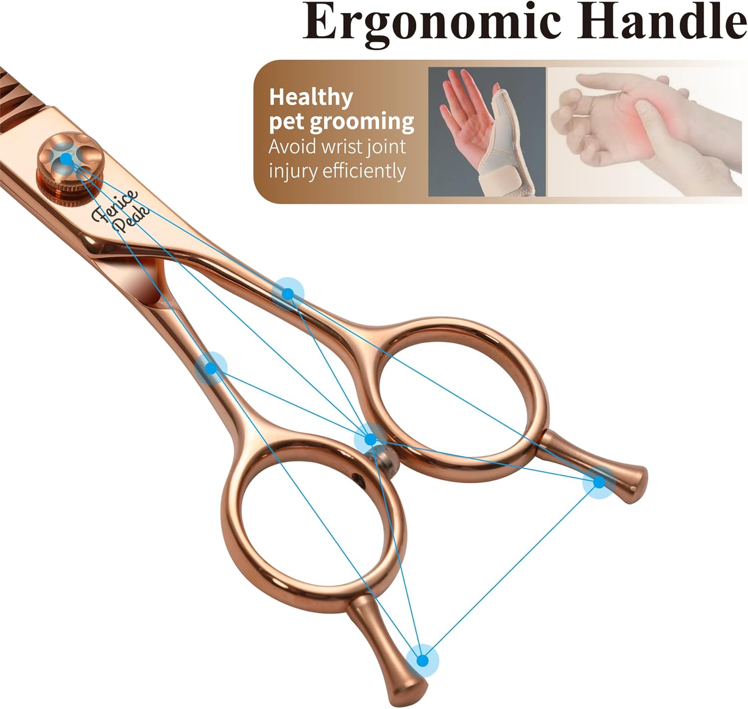 Fenice Peak Professional Dog Grooming Scissors Pet Curved Chunker Shears 7.0'' Extremely Sharp Blades 440C Steel Thinning Scissors Durable Smooth Motion & Fine Cut for Dogs and Cats