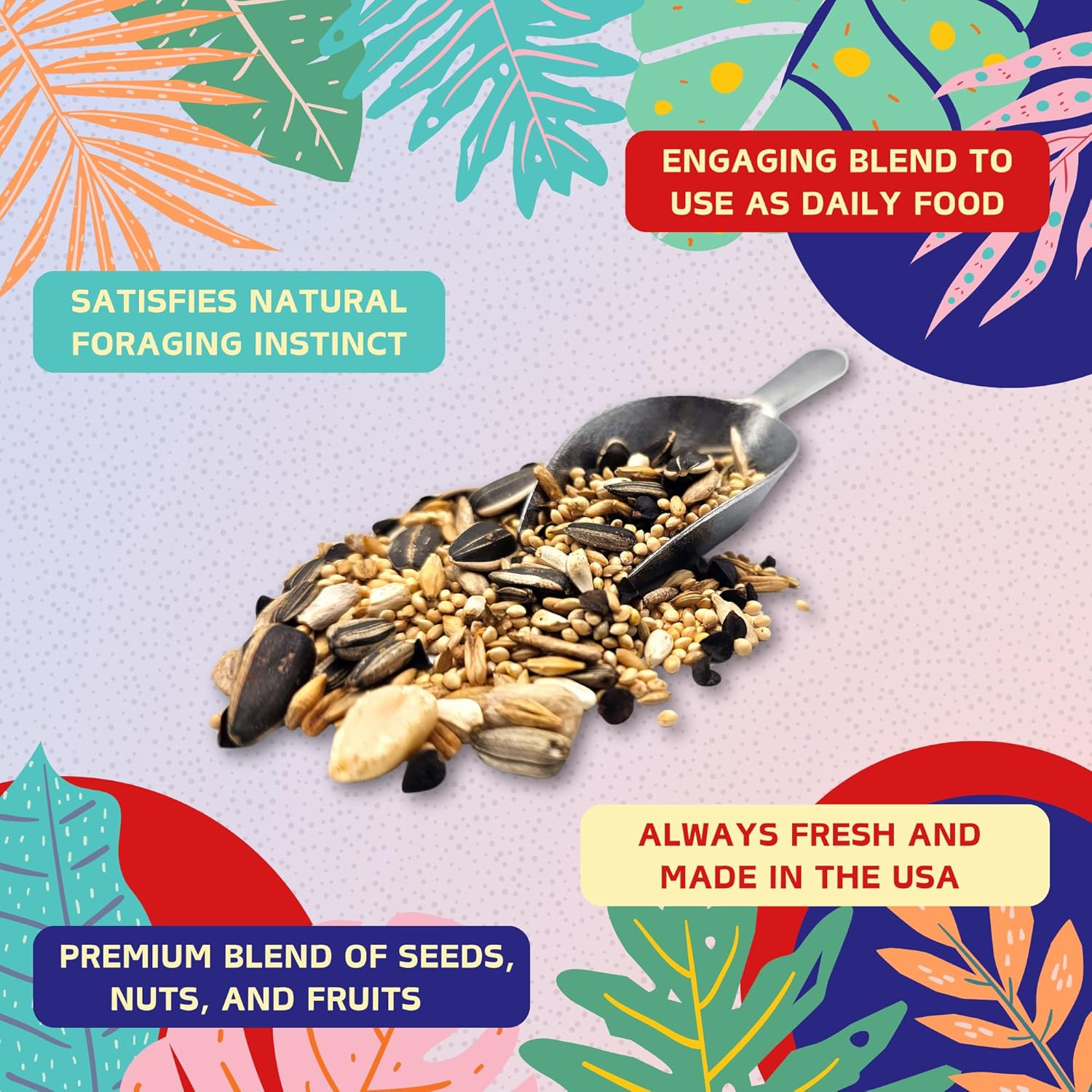 - Variety of Grains: Packed with a diverse selection of grains and mixed bird seed, this blend meets the specific dietary needs of conures, cockatiels, and other small birds, offering essential nutrients for their daily energy and well-being.