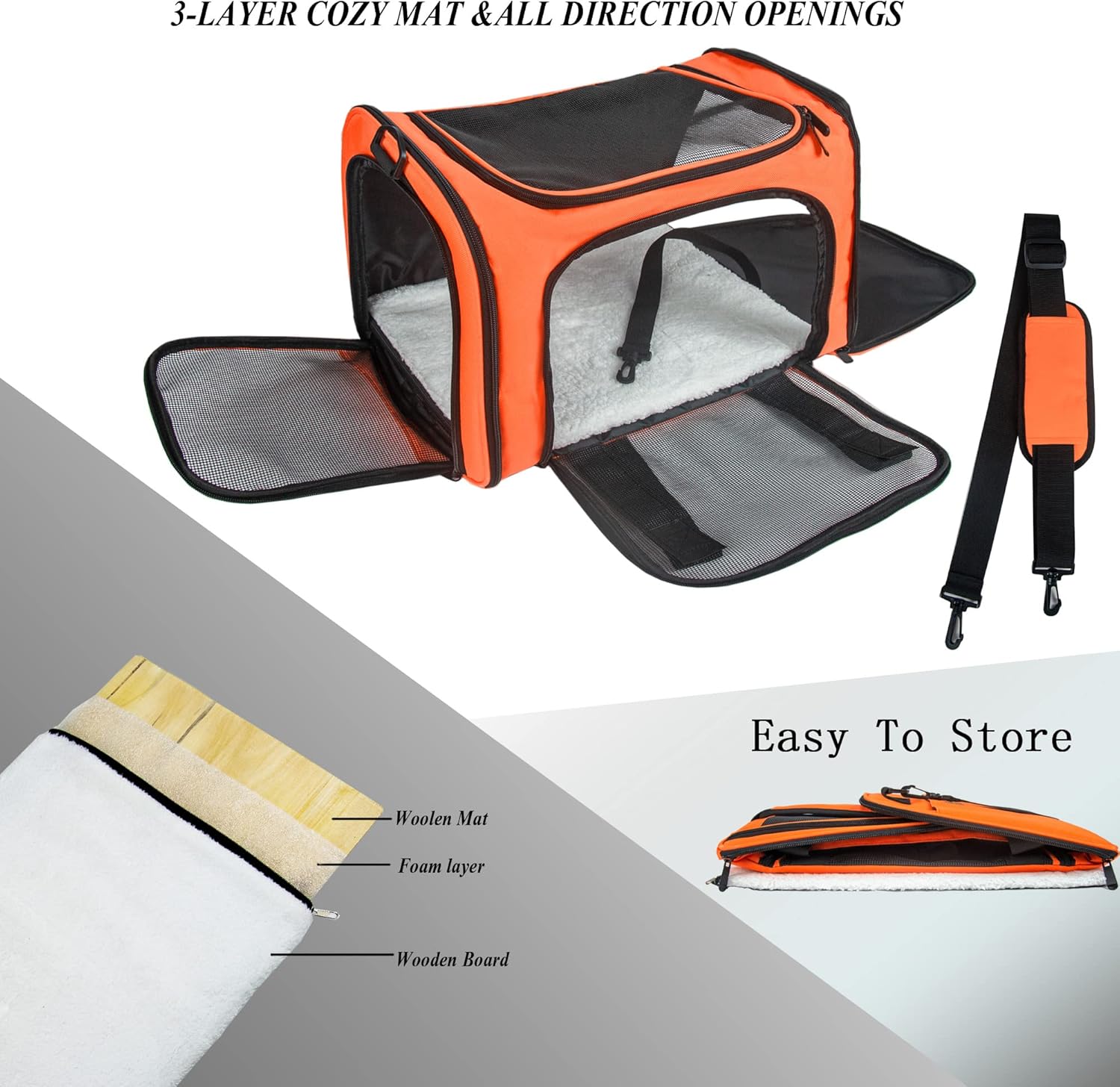 Soft Sided Carrier for Small Medium Cats Dogs,Removable Pad Collapsible Travel Pet Carrier Large Orange