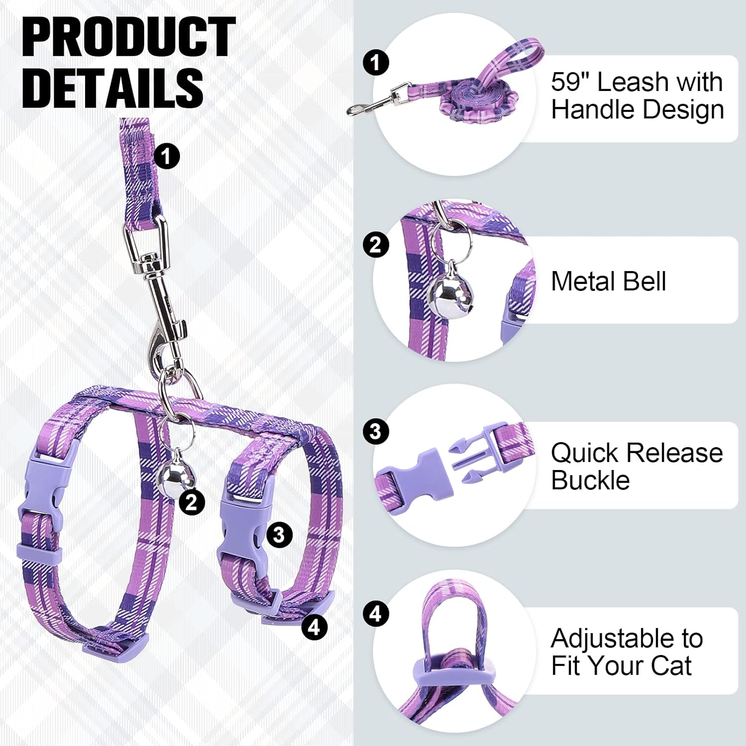 - [APPEARANCE]- The plaid design makes the cat harness escape proof look stylish yet practical. Bright colors also allow you to spot your cat in time to prevent it from getting lost while walking outdoors.