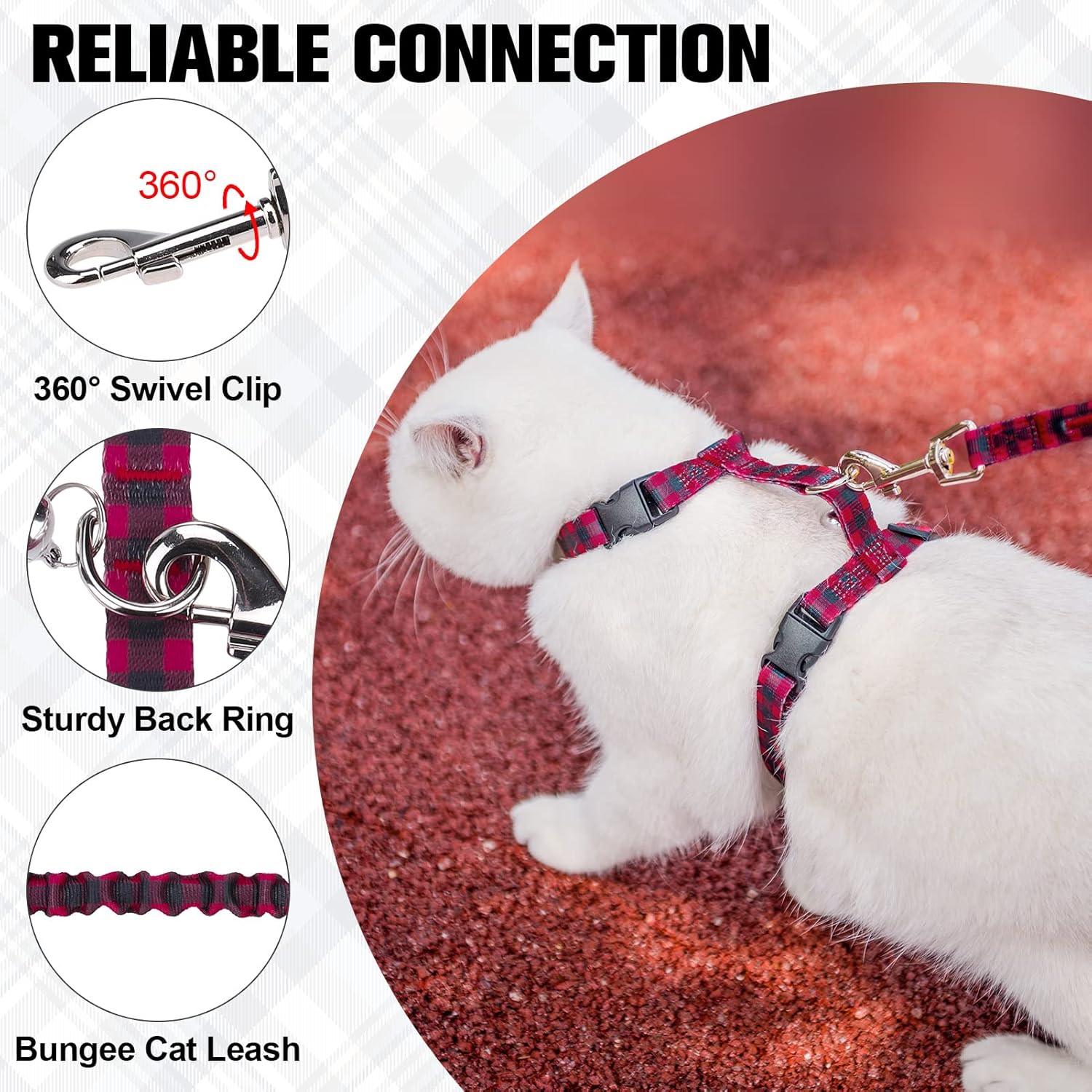 - [APPEARANCE]-The plaid design makes the cat harness escape proof look stylish yet practical. Bright colors also allow you to spot your cat in time to prevent it from getting lost while walking outdoors.