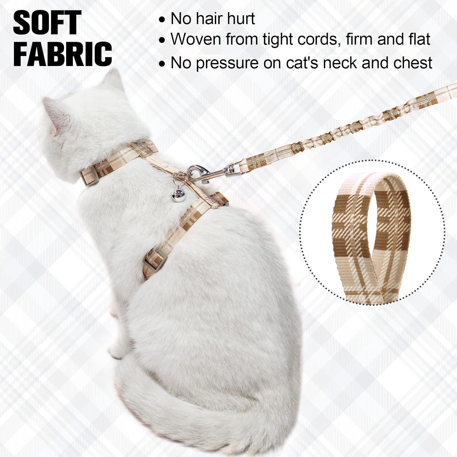 - [APPEARANCE]- The plaid design makes the cat harness escape proof look stylish yet practical. Bright colors also allow you to spot your cat in time to prevent it from getting lost while walking outdoors.