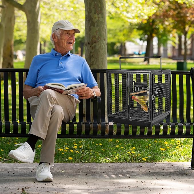 - Portable Design: This travel bird cage top Easy Comfortable Carry Handle, Handle Can Use As Playing Stand For Your Bird, Swing Away Feeder Door With 2 Stainless Steel Bowls. Easy Access With 4 access doors.