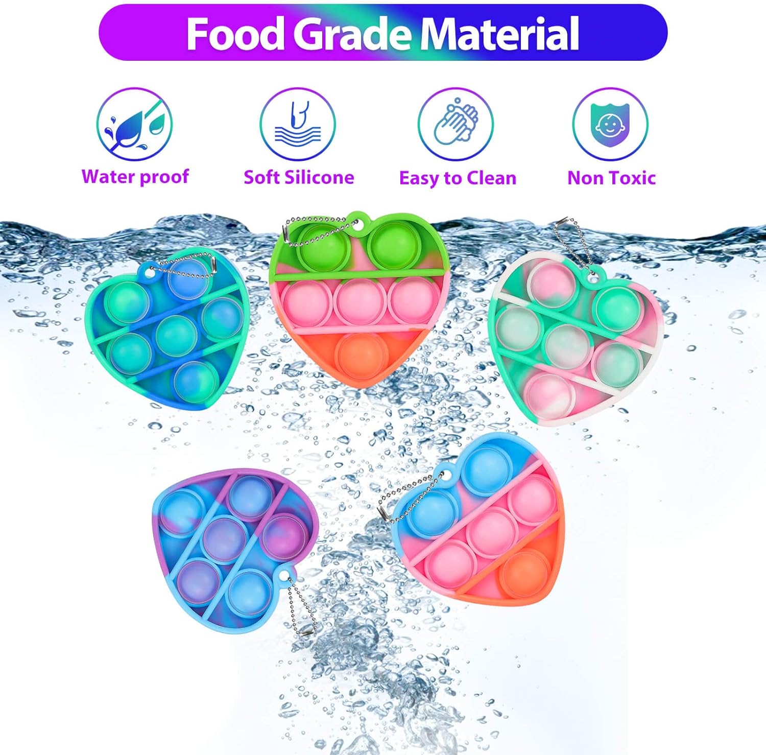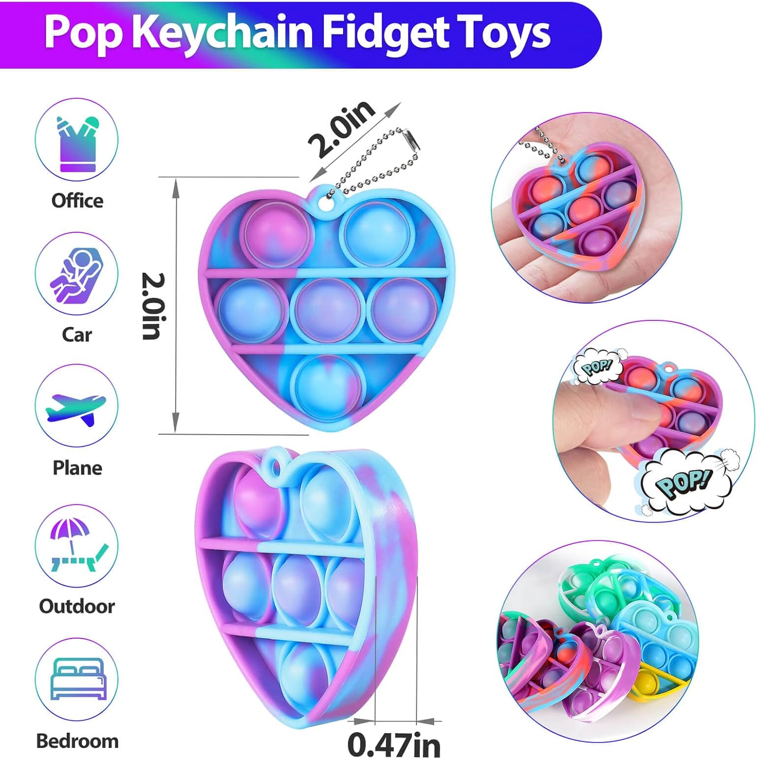 - Valentines Day Pop Fidget Toys for Kids Carnival Prizes: Valentines Pop keychain fidget toys bulk kid party favors are made of soft silicone toddler toys girls party favors to play, CPC certified and child safety tested. It is the most popular stress relief fidget toys for kids 8-12 mini fidget toy christmas fidgets for kids classroom fidgets for girls 10-12 fidgets for teens fidget gift bags for kids party favors key chain fidget pack fidget toys for toddlers 3-8 kids fidget toys for girls.