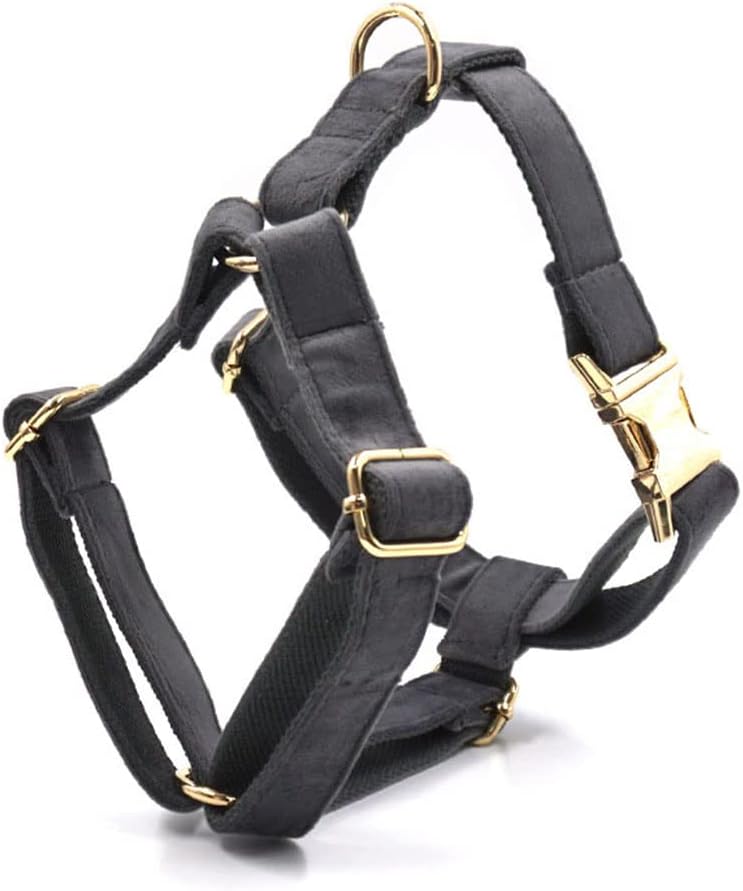 PETDURO Personalized Dog Collar Gray Soft Velvet for Large Medium Small Boy Girl Dogs - Custom Collar with Name Phone Engraved on Gold Metal Buckle - Add Matching Leash Bow Set via Customize Now