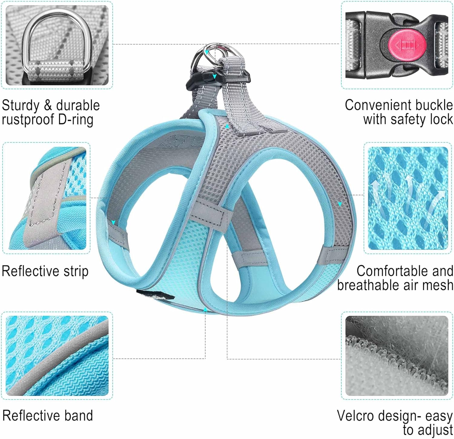 - 【 AIR MESH 】- Dog harness is made of durable thickened air mesh that featured with breathable, lightweight, comfortable, and quick-dry