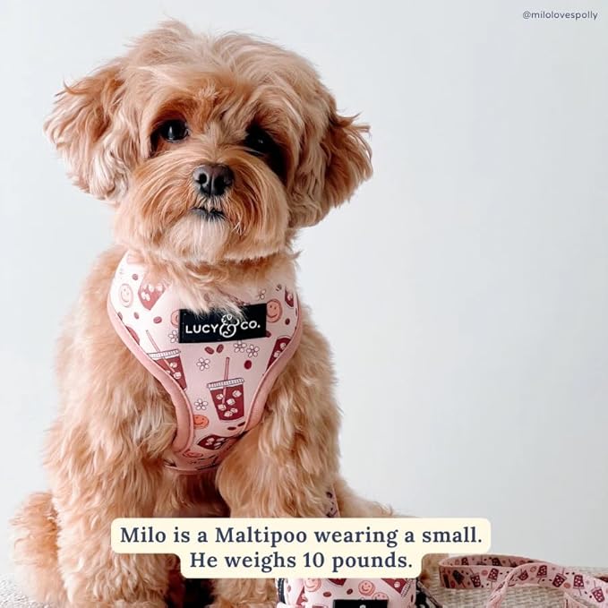 Lucy & Co. Cute Reversible Dog Harness Walking Halter - Best Designer Pet Harnesses for XS - XL Dogs - Padded Adjustable Vest for Easy Walking. (Iced Coffee SZN Reversible Harness).
