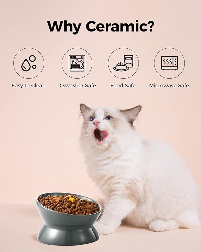 - ๐งธ Tilt Angle Design: 5 inches in width, the tilted cat food bowl keeps food piled or falls to the center, it helps keep the food from being pushed off the bowl, easy for your cat to eat. Perfect for flat face cats.