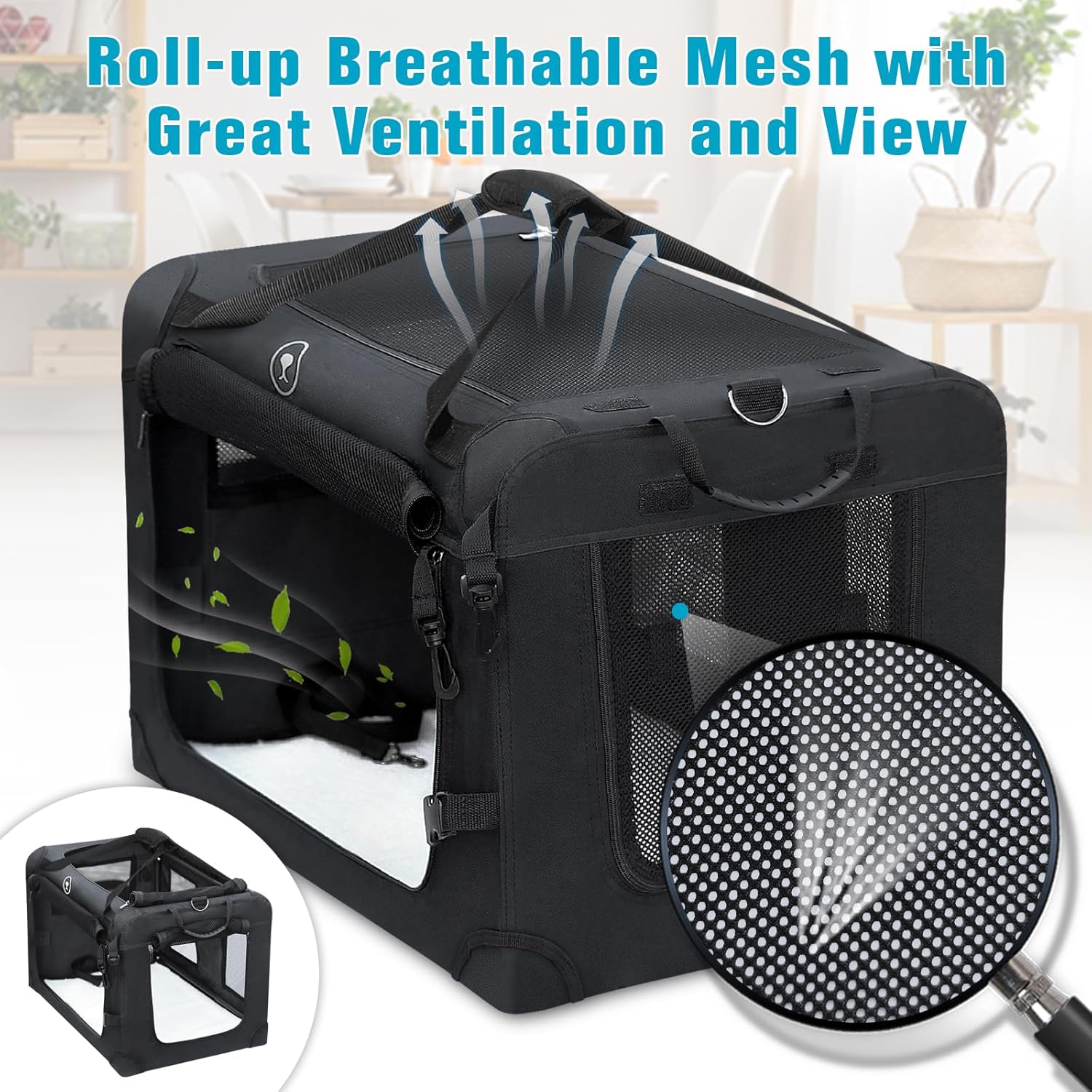 Extra Large Cat Carrier for Car Travel, Pegic Soft Sided Collapsible Pet Carrier for Outdoor and Indoor Uses, Roomy Cat Carrier for 2 Kittens, Large Cat or Puppies Up to 50lbs (Black)