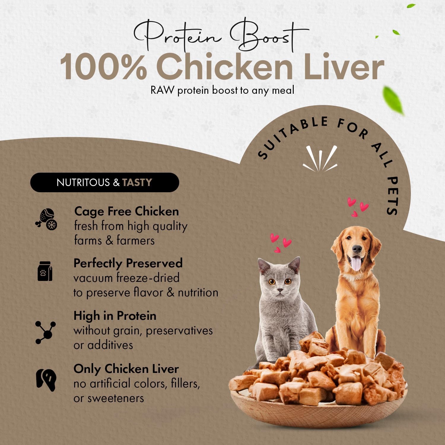 - Why Freeze Dried Chicken Liver Treats? - Like people, animals crave natural sources of protein. Our freeze-drying process ensures each of our freeze dried treats for cats and dogs keeps the robust flavor and vital nutrients of fresh meat. Our treats are single Ingredient, No Additives: Healthy, all-natural treat for cats and dogs – no hormones, preservatives, or fillers.