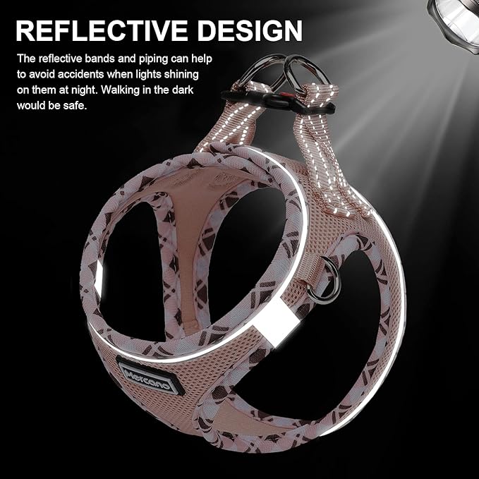 Mercano Soft Mesh Dog Harness and Leash Set, No-Chock Step-in Reflective Breathable Lightweight Easy Walk Vest Harnesses with Safety Buckle for Small Dogs, Cats (Champagne, L)