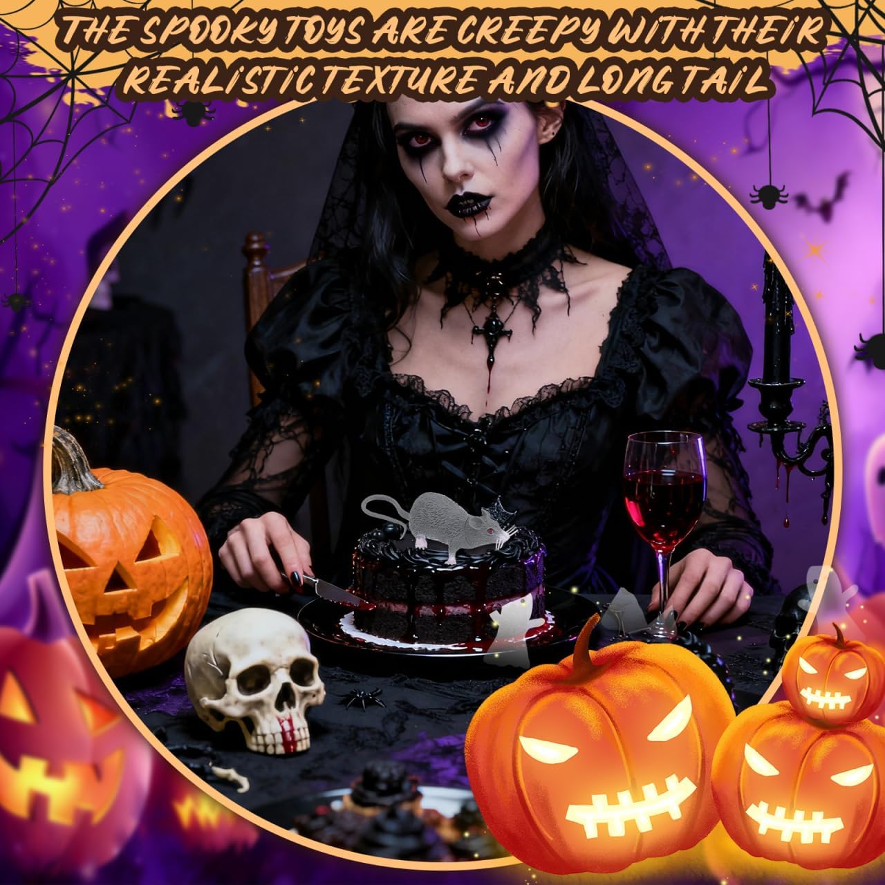 PRETYZOOM 2PCS Halloween Fake Rat Plastic Squeezable Fake Mouse Realistic Rats for Creepy Decorations Halloween Pranks Props (8.6-inch Included Tail)