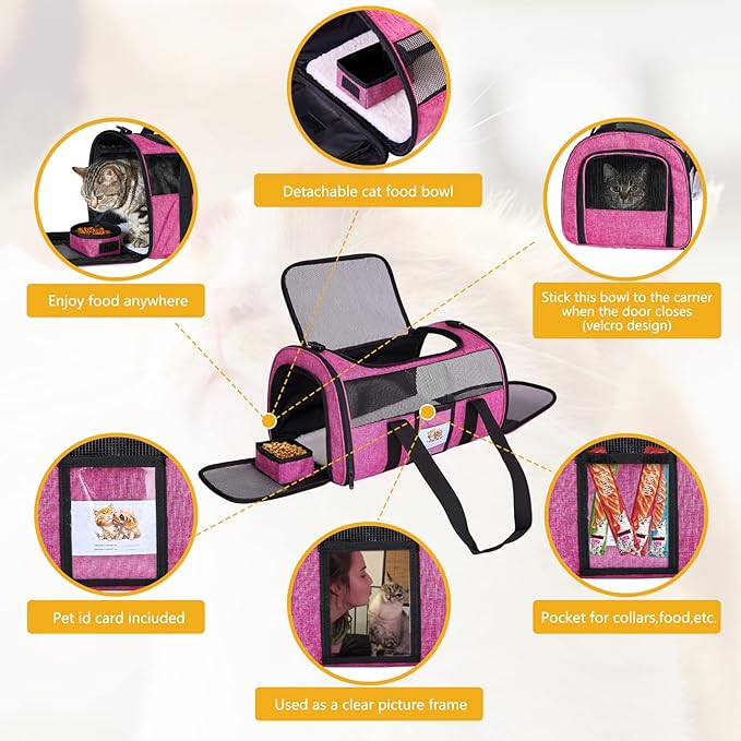 - โ[Airline Approved] Our cat carrier fits comfortably under most filght seats, like Southwest Airlines, American Airlines, Delta Airlines, Alaska Airlines, Jetblue,Frontier and so on. Also, it is perfect for car ride and vet ride.
