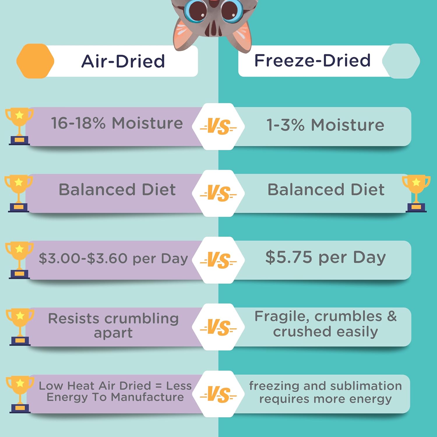 - SUPERIOR NUTRITION and HYDRATION to FREEZE DRIED: LOVE, NALA's premium air-dried cat food stands out with 3 times more moisture content than freeze-dried and conventional extruded kibble. The efficient air-drying process preserves vital proteins, vitamins, enzymes, and nutrients, reducing the amount of food required to nourish your cherished feline companions.