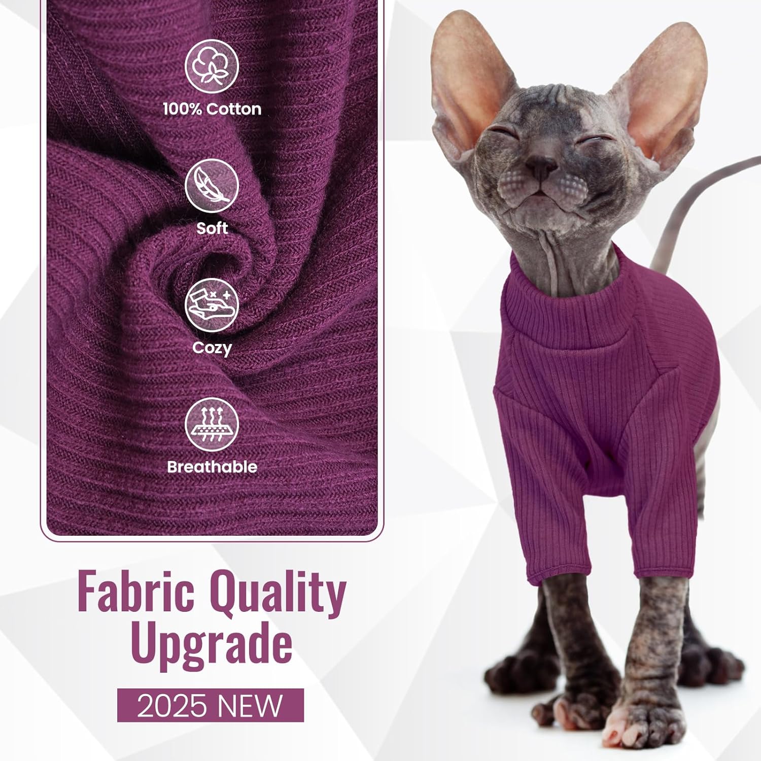 - 【Soft & Comfy Skin-Friendly Fabric】Hairless Cats have no fur they lose more body heat than coated cats, so their skin is very Sensitive and Vulnerable. DENTRUN Hairless Cats Clothes are made of 100% pure cotton and have been specially softened to make the whole clothes very soft. Slim-fitting style are perfect fit cats body and high-stretched fabrics are Perfect for Sphynx Cat, Devon Rex Cat, Cornish Rex Cat and Peterbald Cat.