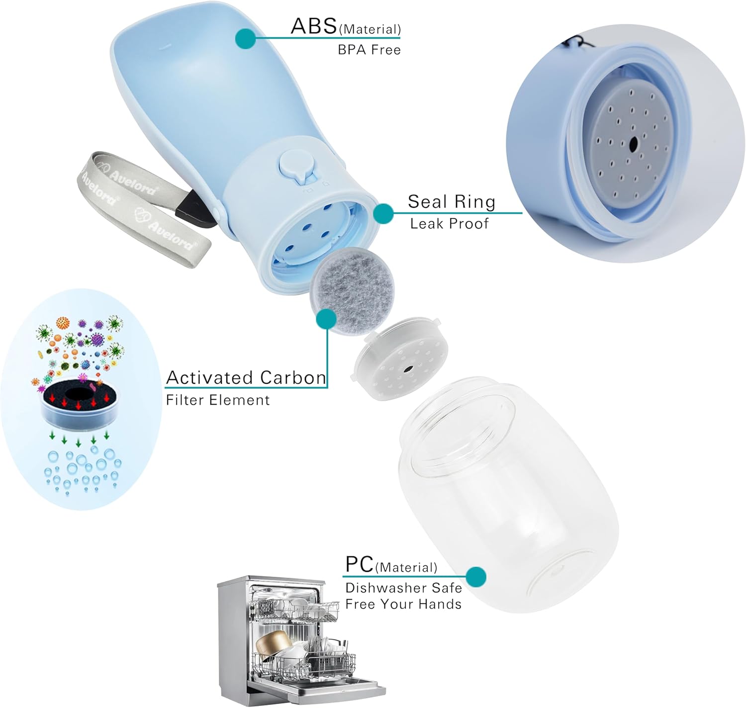 - Dishwasher Safe: The portable dog water bottle is made of ABS and PC high-quality safety plastic, suitable for hot water below 212℉/100℃. The water bottle body can be put into the dish-washing machine for cleaning. It's not easy to deform and easy to clean, ensuring safety and durability.