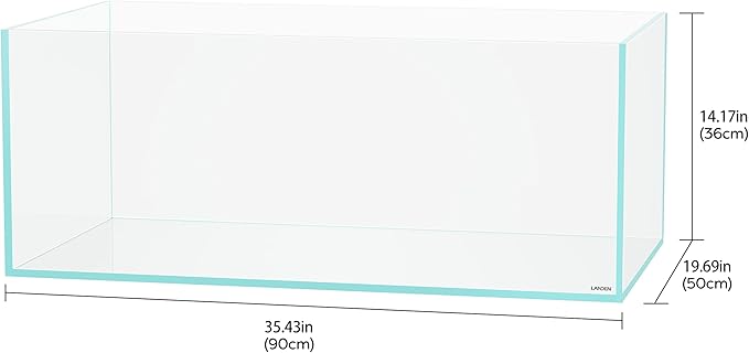 LANEDN 90S 39 Gallon Shallow Tank Rimless Low Iron Tank 35.4" L × 19.7" W × 14.2" H (90cm x 50cm x 36cm); 10mm Thickness Aquascape Fish Tank, Black Leveling Mat Included