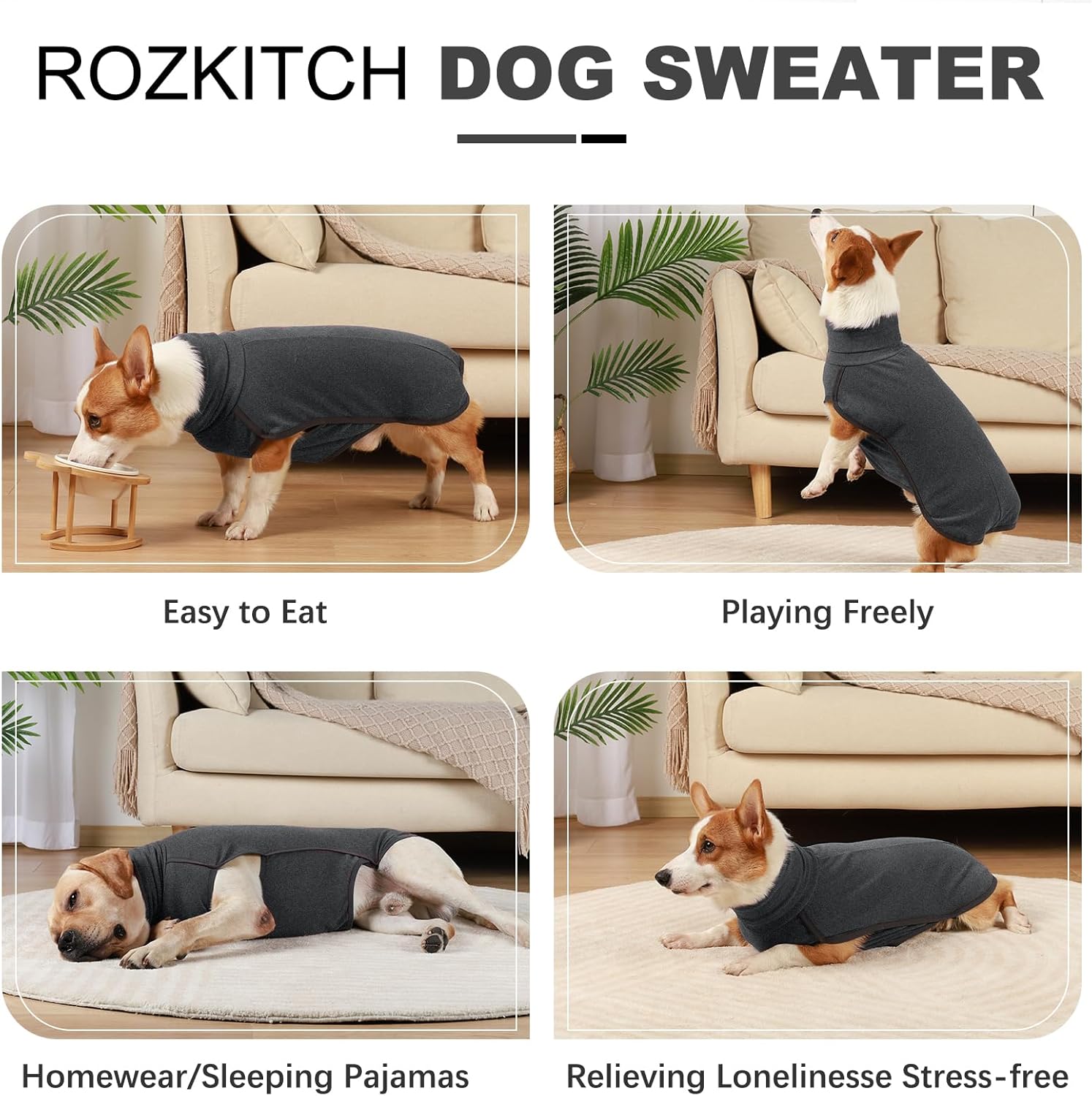 ROZKITCH Dog Winter Coat Soft Pullover Pajamas with Leash Hole, Pet Windproof Warm Cold Weather Jacket Vest Cozy Jumpsuit Apparel Outfit Clothes for Walking Hiking Travel Sleep Black XS