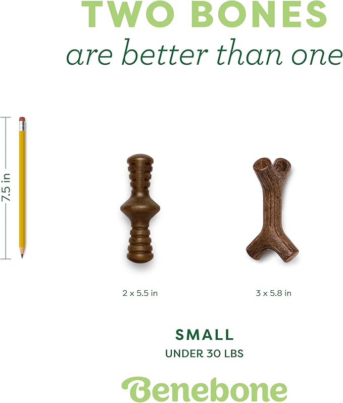 Benebone 2-Pack Maplestick/Zaggler Durable Dog Chew Toys, Real Maplewood, Real Bacon, Made in USA Small