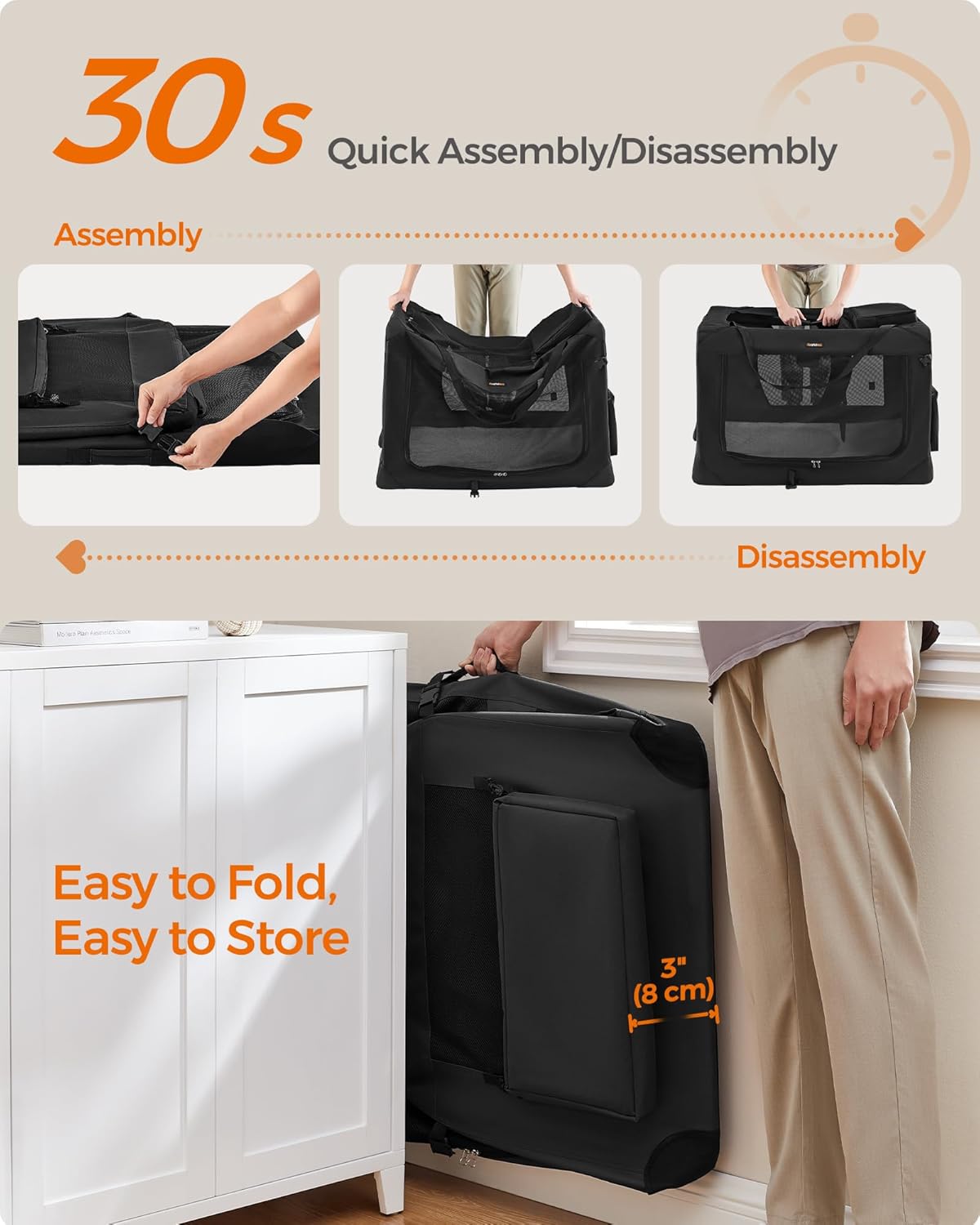 Feandrea 40 Inches Collapsible Soft Dog Crate, Portable Travel Dog Crate for Indoor and Outdoor Use, Dog Carrier Kennel with Safety Zippers, for Living Room, Car, Travelling, Camping, Black UPDC10H