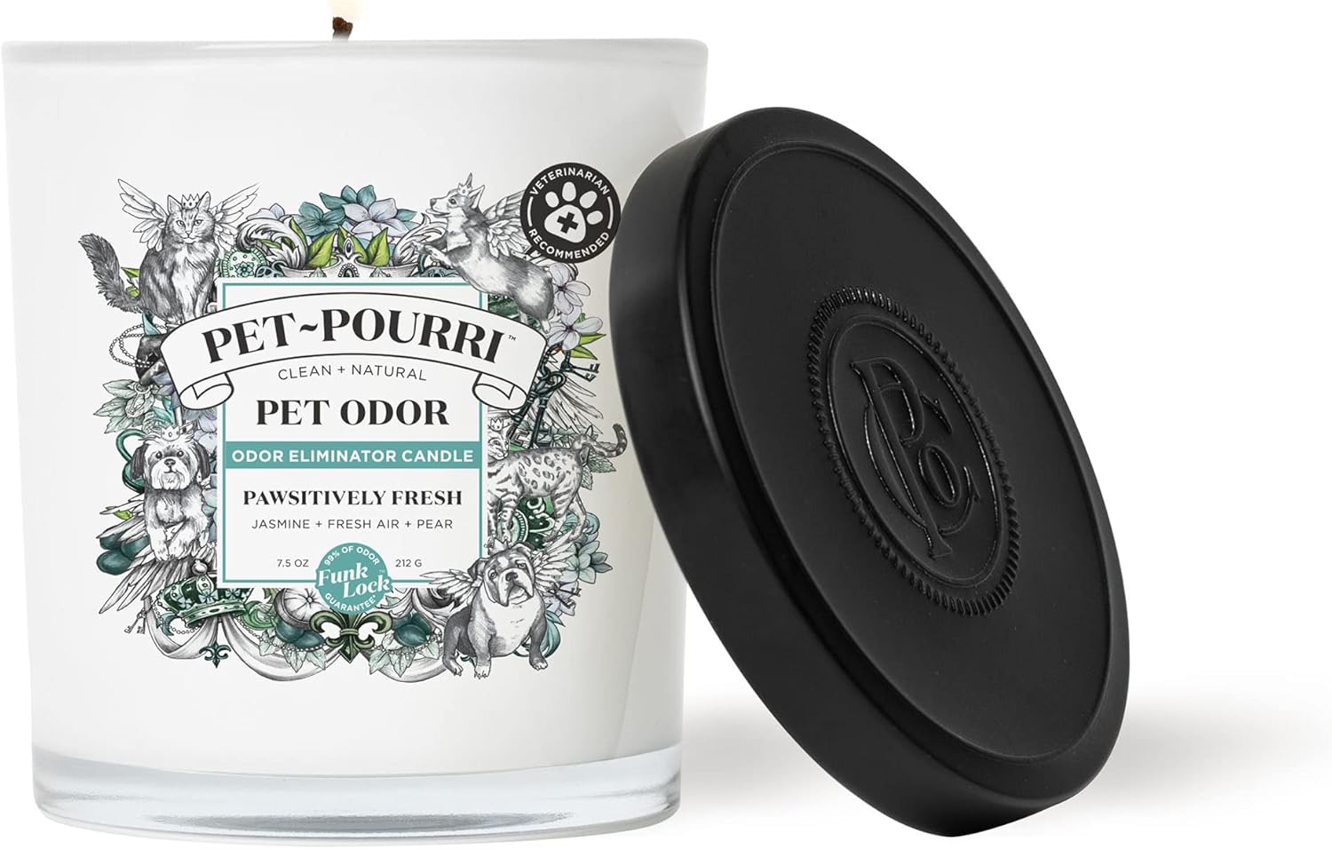Pet-Pourri Pawsitively Fresh Pet Odor Deodorizer Candle, Burns Up to 45 Hours, Aromatherapy & Air Freshener with Essential Oils, Plant Based Ingredients & Wax, Vet Approved, Jasmine Pear Scent