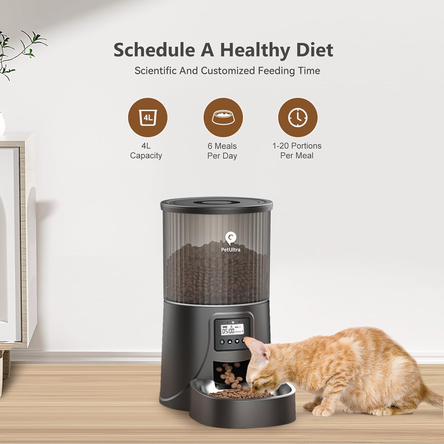 Automatic Cat Feeder: 4L Timed Cats Food Dispenser Programmable 1-6 Meal for Cat and Small Medium Dog- Auto Pet Feeder Easy to Set Up Dual Power Supply with Desiccant Bag| Detachable Washable