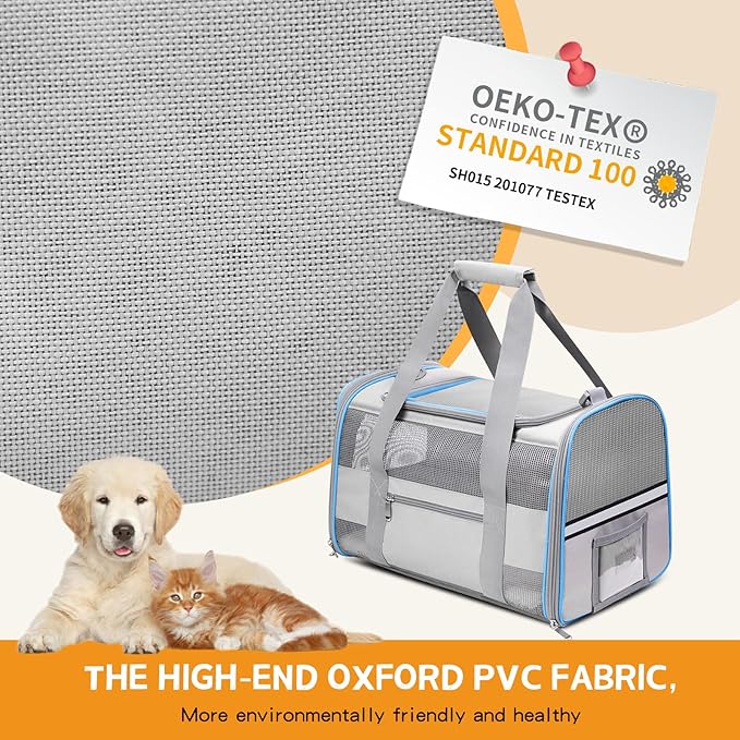 - ๐ใFit Medium & Large PetใLarge cat carrier measures 20โL x 13โW x 13โH, This large pet carrier fits Large Cats and Small Dogs, Medium Cats within 18" x 12" x 12" and under 25 lbs. Also perfect for 2 Small cats. Have OEKO-TEX STANDARD 100 CERTIFIED, More safer. Please measure your pet's length and height before adding the carrier into shipping cart