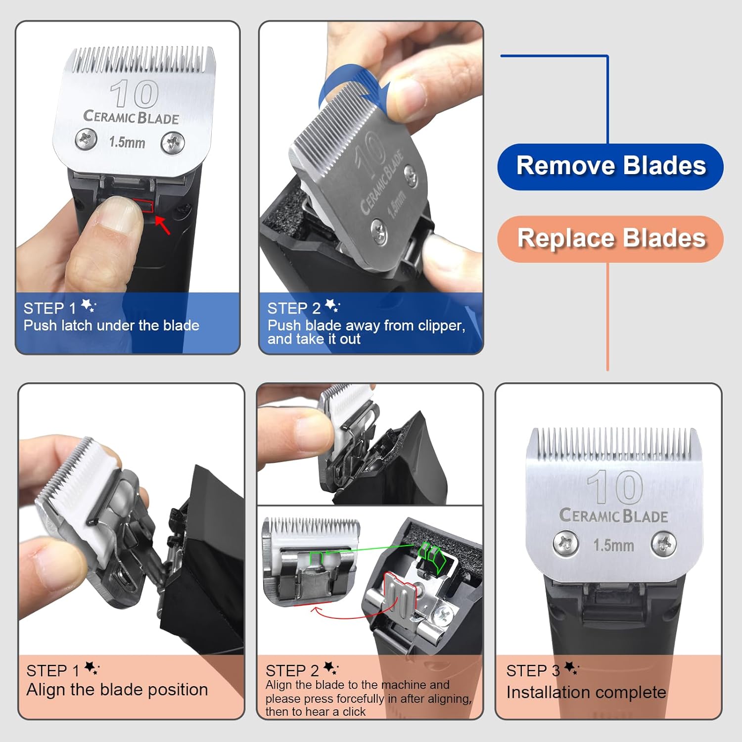 3 Pack 10# Detachable Pet Dog Grooming Ceramic Blades,Compatible with Andis,Oster A5,Wahl KM-10 Series,Size #10 Blade 1/16-Inch 1.5MM Cut Length