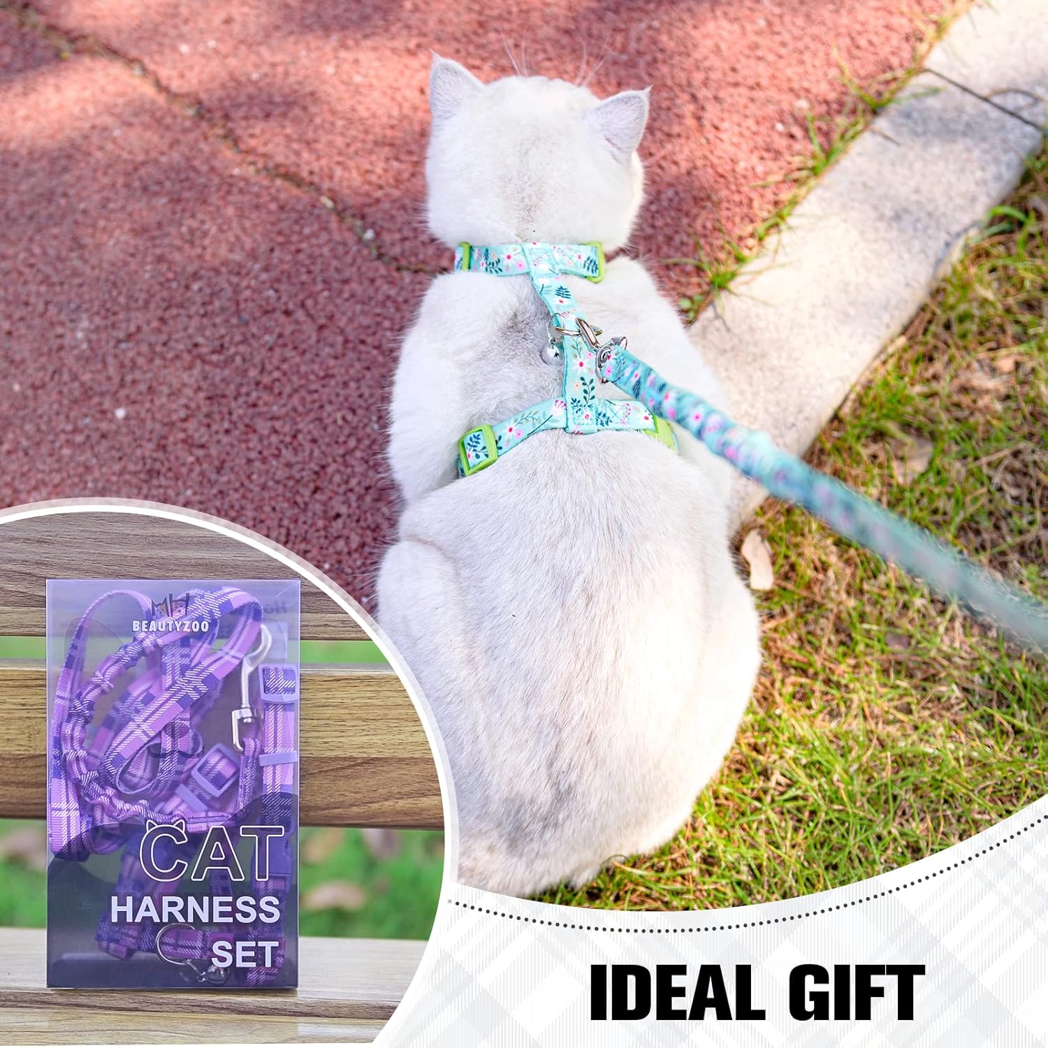 BEAUTYZOO Cat Harness and Leash Set Escape Proof for Walking, Kitten Soft Adjustable Vest Harnesses for Small Medium Large Cats, Easy Control Breathable Plaid Ribbon Nylon for Outdoor Indoor Use