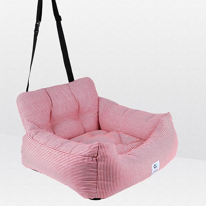 Aidou Dog Booster Seat for Small to Large Dogs & Cats, Travel Safety Seat with Storage & Dual-use Car & Home (Small Red Stripe)