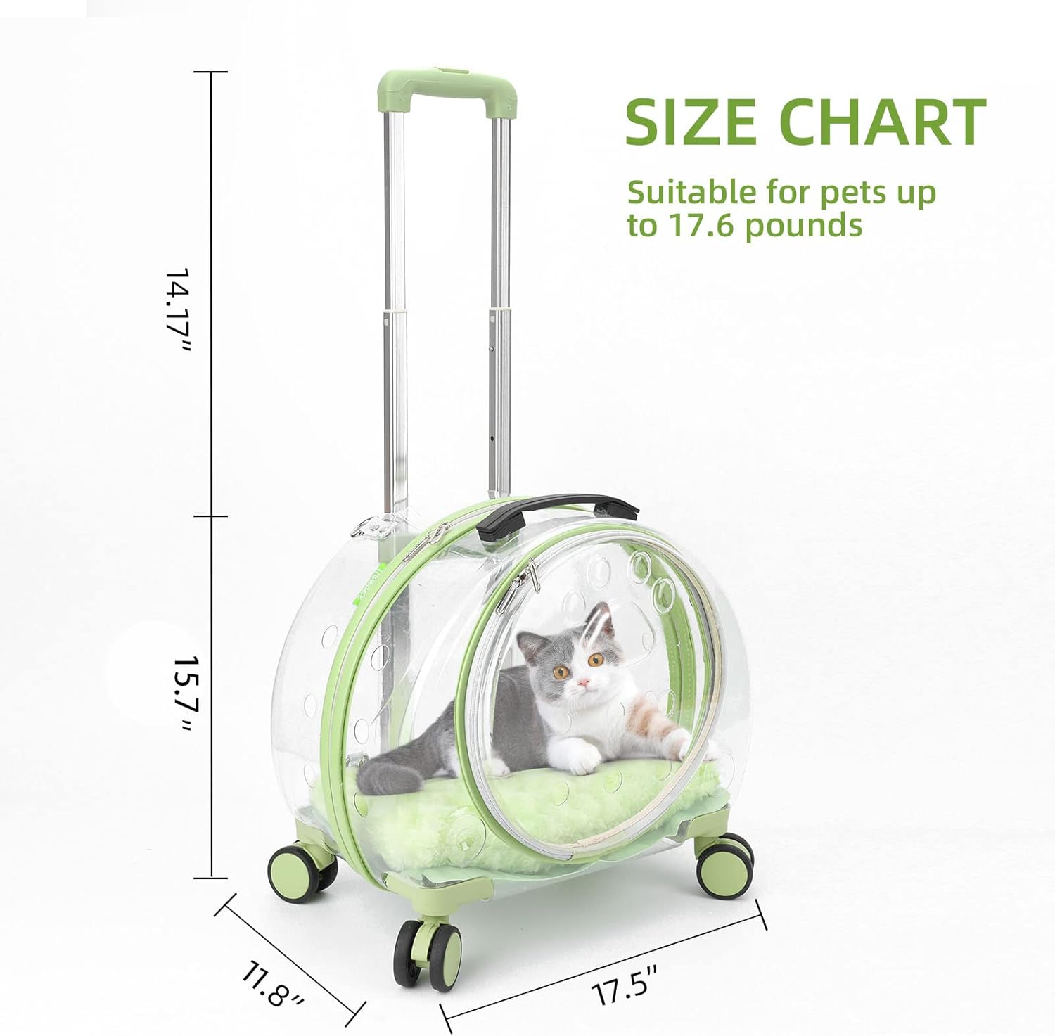 Transparent & Fully Breathable Hard cat Carrier with Rolling Wheels for Dogs, Cats, Multiple Carrying Options, Perfect for Traveling/Taking a Walk