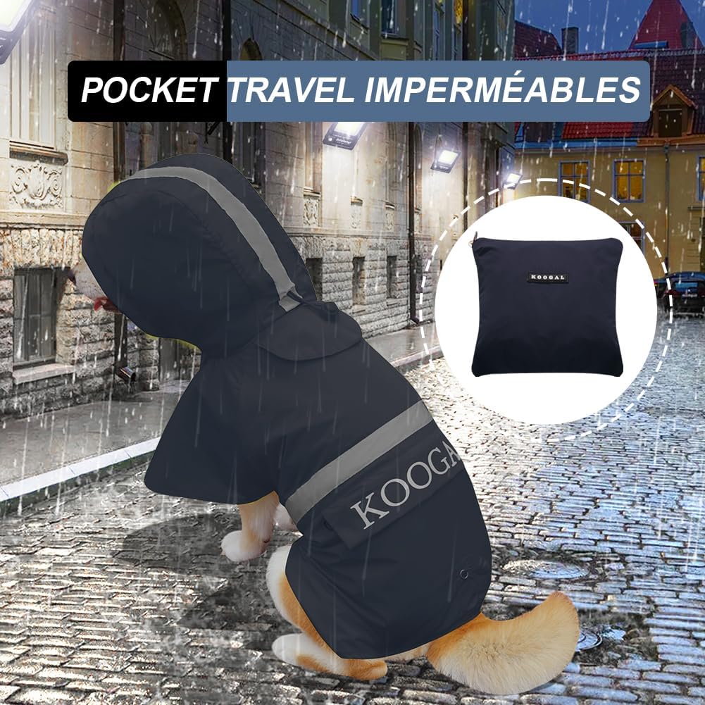 Hooded Pet Dog Raincoat for Small Sized Apparel Poncho Waterproof,Dog Clothes,Dog Jacket, Dog Raincoats Jacket for Small Sized Dogs(Navy Blue,2XL)