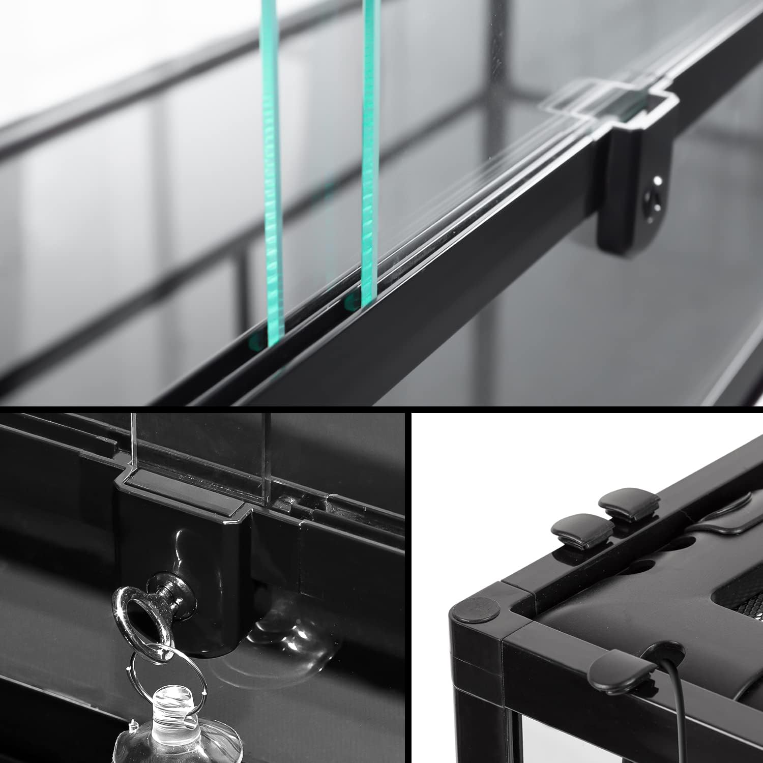 - 【Double Sliding Doors】This large reptile terrarium tank has double sliding doors, it's convenience for you to do clean or daily feed. Double safety lock prevents the pets from escaping and accidentally opening.