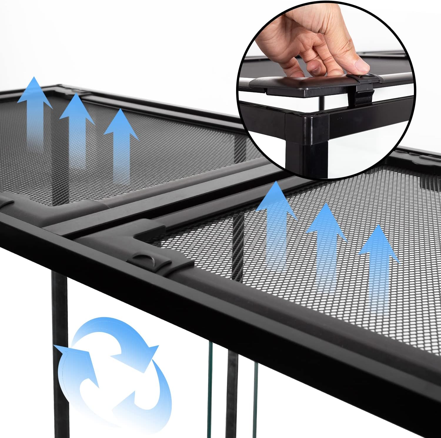 - 【Well Ventilation】The removable top mesh screen provides plenty of ventilation for optimum airflow and allows full spectrum, UVB and IR light penetration. Double top cover are convenience to add decorations. Raised bottom frame can be fit a substrate heater.