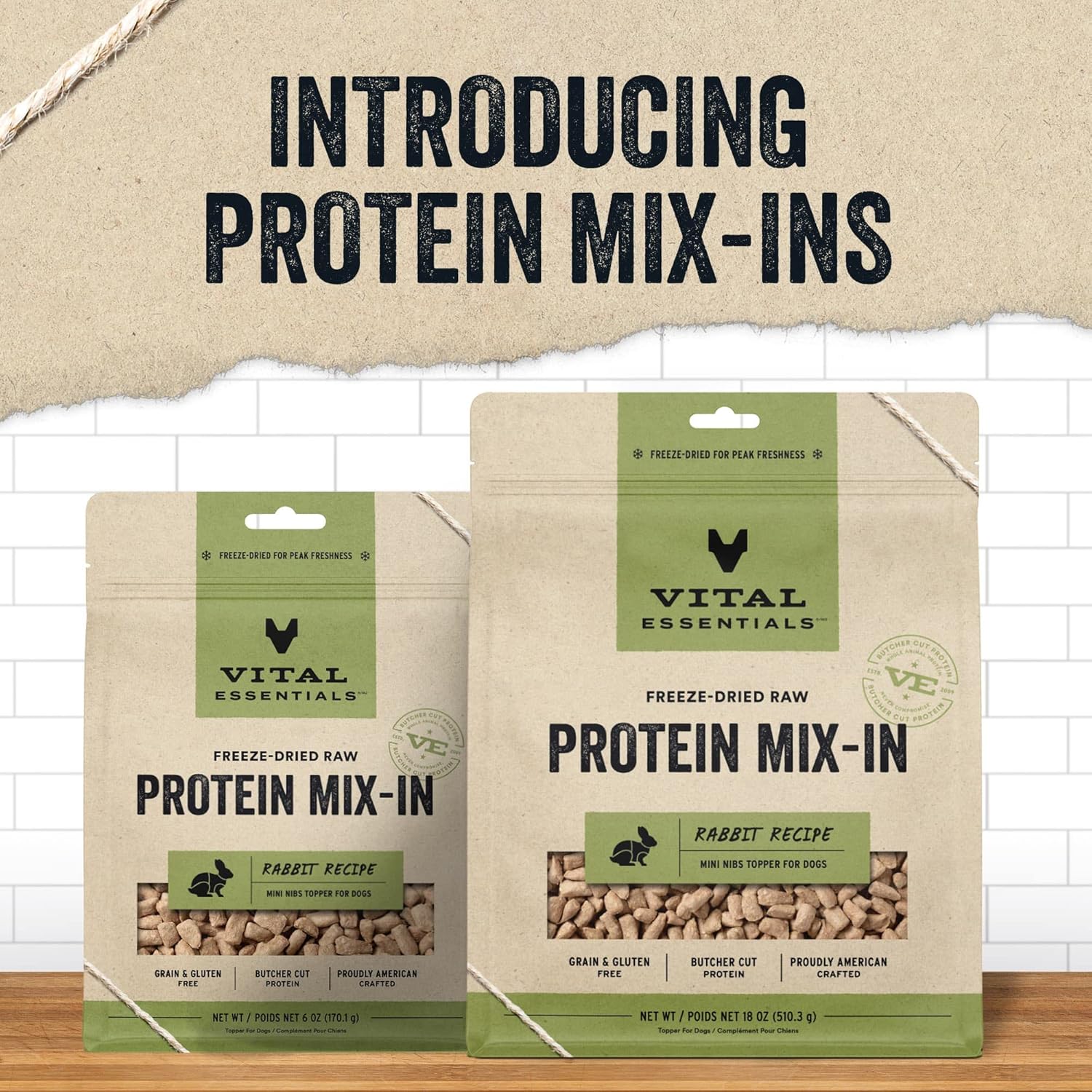 Vital Essentials Freeze-Dried Raw Protein Mix-in Dog Food Topper, Rabbit Mini Nibs Topper for Dogs, 18 oz