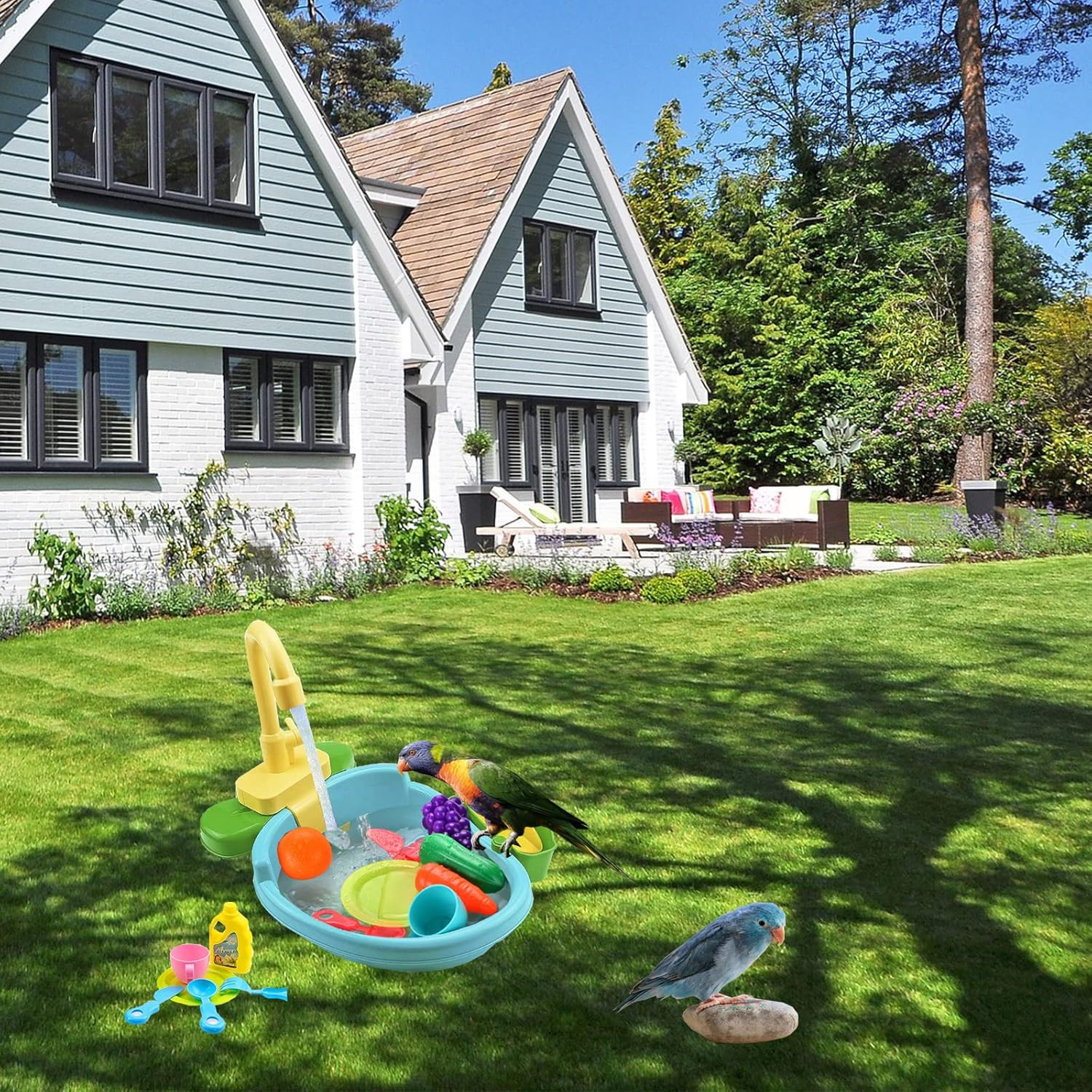 - 【 Multi functional bird bathtub】: The parrot bathtub can be your child's simulated dishwasher or your bird parrot bathing tool. It can be used as a children's toy, and the bird bath tub contains many small toy accessories, which will make birds more interesting when taking a shower. You, your children, and pets will have a wonderful summer.