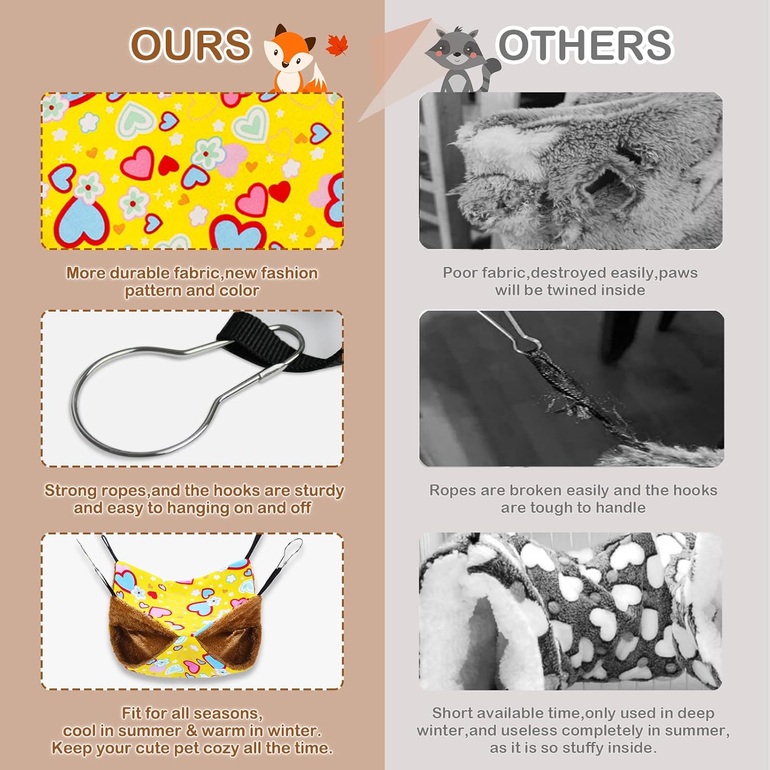 - 【Good Accessories】:Hooks are sturdy,chew proof and very easy to use.Ropes are tight,and will keep stable when is hanging.Hammock and tunnel are all purely handmade,because we just want to focus on the details and give you a satisfied product.