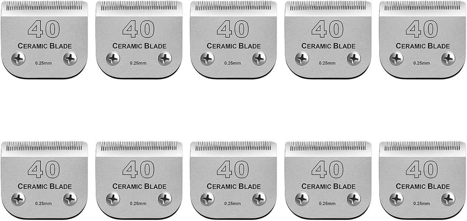 10 Pcs Detachable Pet Dog Grooming Clipper Ceramic Blade Sets,Compatible with Andis Size 40 1/100"(0.25mm),Compatible with andis/Oster A5,Wahl KM10 Series Clippers