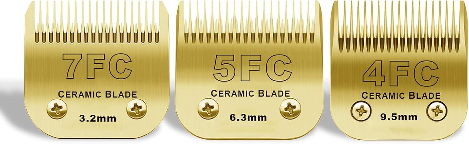 7FC/5FC/4FC Detachable Pet Dog Grooming Clipper Ceramic Blades Set,Compatible with Andis,Oster A5,Wahl KM10 Series Clippers,3 Pack,Gold