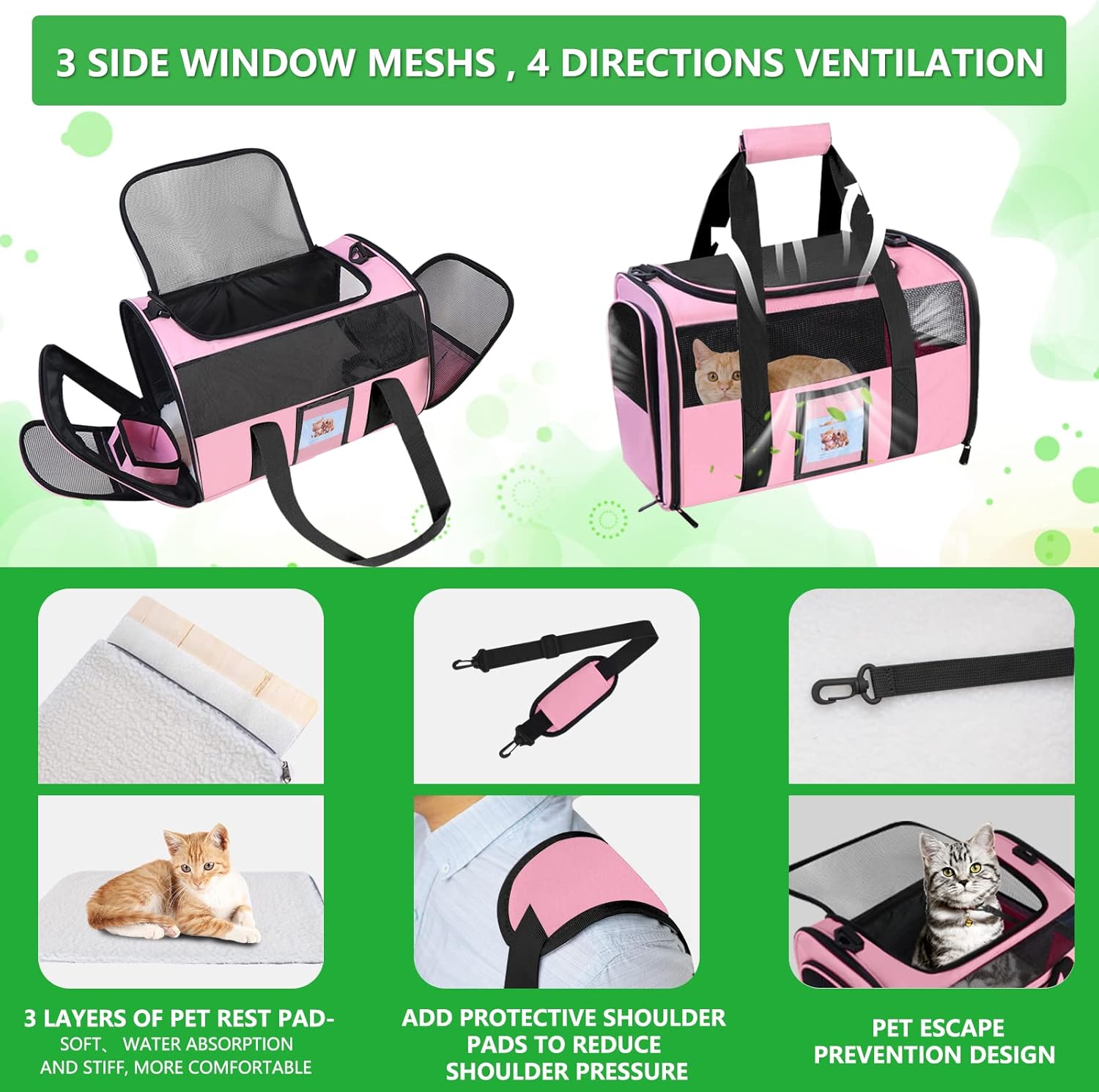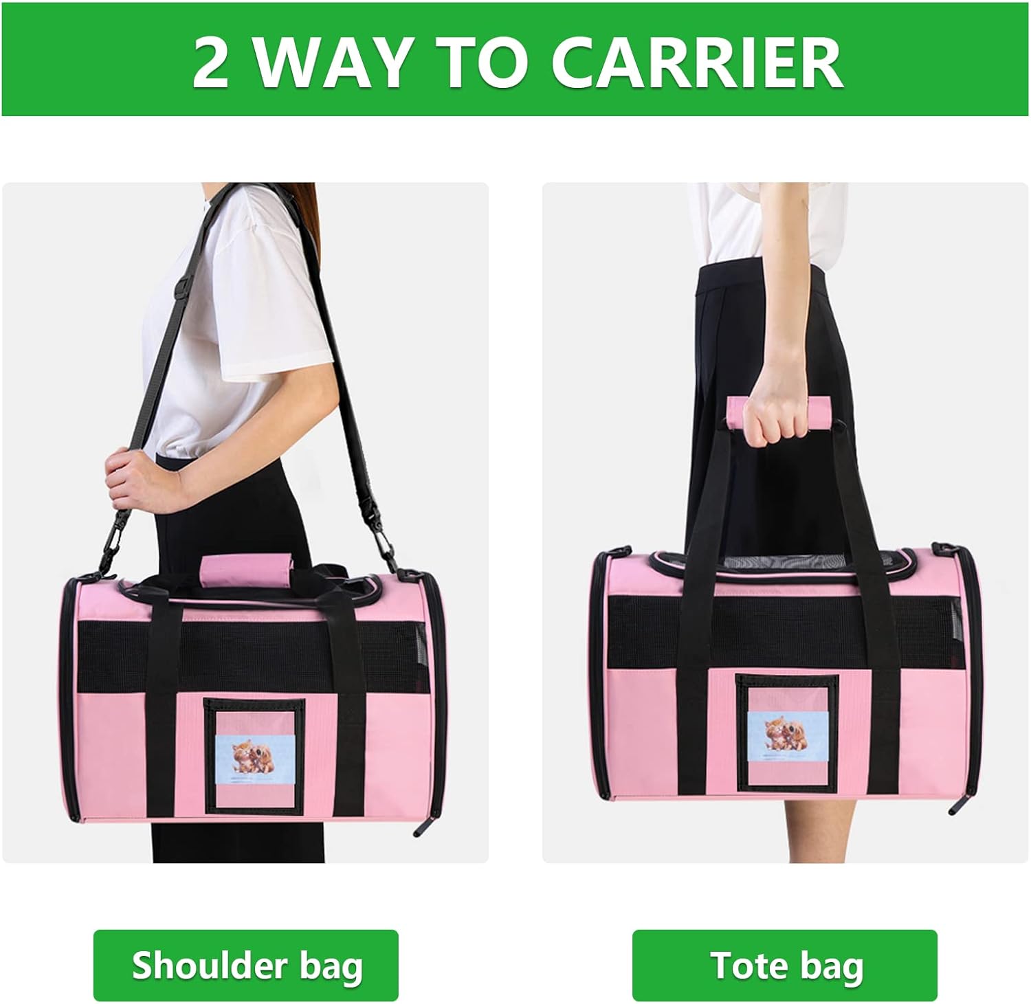 20" Large Cat Carrier Soft Sided for Cats Under 25 lbs, Folding Dog Carrier 20" Carrier for 2 Cats Travel Carrier - Pink